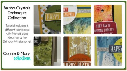 And…did you see! We have a new Technique Based Class to Go featuring the Brusho Crystals! You get tutorials for SIX different techniques using Brushos and see six finished cards using the Birthday Wit greeting set (or you could substitute a greeting set you already have!) See details HERE!