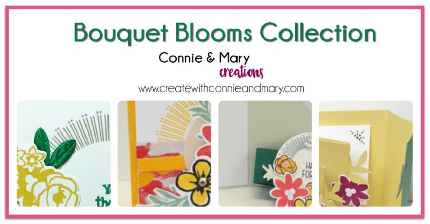 Our newest collection tutorial using the Bouquet Blooms Bundle, is now available! Designed by Connie and Mary, this Collection includes tutorials for four projects…THREE cards, one a special fold, and a fabulous mini scrapbook/multi-gift card holder you won’t want to miss!