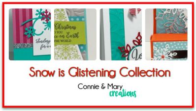 Our first week features the SNOW IS GLISTENING BUNDLE with stamp set and Snowfall Thinlits, designed by Connie and Mary! Shhh, stay tuned NEXT week for the corresponding Happiness Surrounds tutorials! You’ll get THREE card and one small 3D tutorials with this Snow is Glistening Collection for only $10!