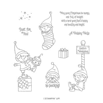 Second up is the so, so FUN #Elfie Stamp Set! Who can resist those darling elves? They are perfect for cards, tags, favors and a whole host of other projects! We’ve used the #Elfie stamp set with Let it Snow Designer Paper for our tutorial Collection of three cards (one a special fun fold) and a super fun small 3D project!