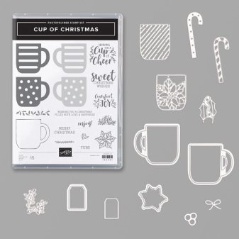 Next up is the REVERSIBLE stamp set, Cup of Christmas! What a FUN concept and who wouldn’t love some hot cocoa, coffee or tea in those CUTE mugs? We’ve matched the Cup of Christmas Stamp Set and Cup of Cheer Dies with the Night Before Christmas Designer Paper. This tutorial Collection has three cards (one a special fun fold holding a gift card) and a super fun 3D project to make for craft fairs or friends and family!