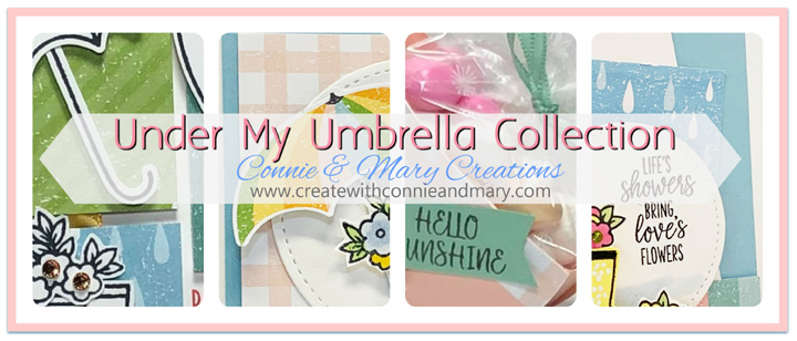 These FOUR designs are ALL NEW and sure to be a hit with you and your customers! We’ve created THREE cards (one a easy fun fold!) and two versions of a 3D favor with STEP-BY-STEP PHOTO TUTORIALS using the Under My Umbrella Bundle that we know you will love!