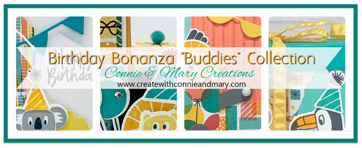 Who doesn’t love Stampin’ Up!’s new Birthday Bonanza Suite of products? The cute little “Bonanza Buddies” images aren’t just for kids…adults will love these fun little animals, too! And the designer paper colors and accessories are SO bright and colorful, plus some images can be cut with the dies!