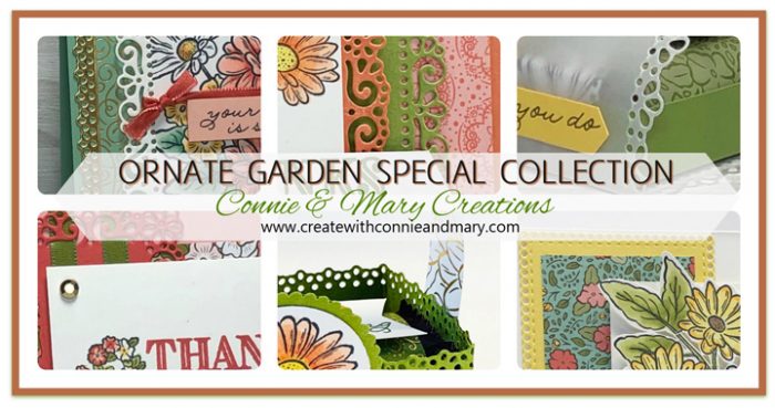 Feel free to use these cards and tutorials for you own personal use, for classes or workshops. You may NOT resell our tutorials OR include them as an incentive with purchase. Please respect our artistic copyrights and that the designs shared in our collections are the property of Create with Connie and Mary as are all photographs. Cropping our photos or removing our watermarks for your personal use or in your business is strictly prohibited. Please do not post our collection ideas to ANY public forum. You are welcome to send your own card photos using these ideas to your personal customers via email or newsletter only to advertise your class. We kindly ask that you do not submit these cards to any other publication or contest. This includes any Stampin’ Up! event or any online or paper magazine’s contests and publications.