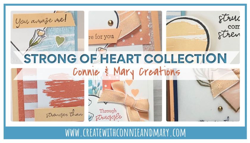 STRONG OF HEART is Stampin’ Up!’s “Make A Difference” stamp set, where they donate $3 from each set sold to support heart health. What a great way to give back to the community! Just in time for Stampin’ Up!’s Day of Service on September 16th, Create with Connie and Mary decided to use this stamp set for our next Collection! We’ve designed six exclusive cards using the heart images and encouraging sentiments in this Strong of Heart Stamp Set, paired with You’re A Peach Designer Paper. We’ve made it EASY for you to offer a product class featuring this stamp set and our tutorials! It would also make a WONDERFUL World Card Making Day class!