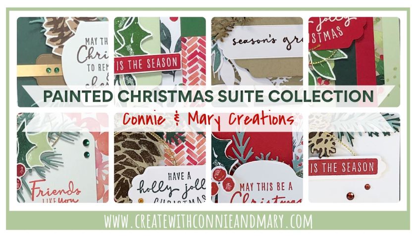 Create with Connie and Mary is featuring the PAINTED CHRISTMAS SUITE of products for our next Collection of EIGHT CARD TUTORIALS to get you ready for the holiday season! The CHRISTMAS SEASON’S nature-inspired images can be country rustic or formally elegant. We’ve also used the heartfelt sentiments from the CHRISTMAS TO REMEMBER stamp set, along with the full card sized CHRISTMAS PINECONE DIES for your handcrafted messages! In addition, the watercolor images in the PAINTED CHRISTMAS DESIGNER PAPER add holiday warmth and cheer.