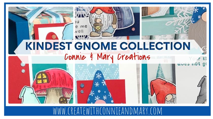 Supplies used: Kindest Gnomes Stamp Set, Gnomes Dies, Storybook Gnomes Designer Paper, Wonderful Snowflakes, Fine Sparkle Adhesive Backed Gems, Adhesives