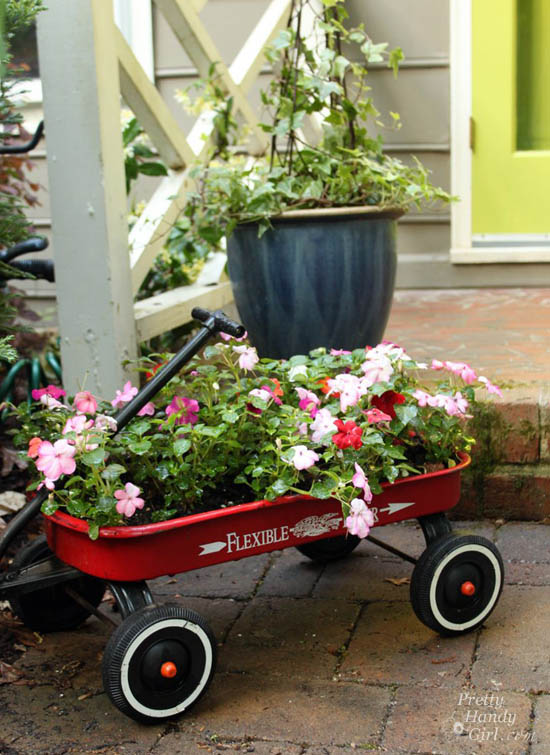 Happy Monday everyone and welcome to Inspiration Monday! Are you ready to be inspired? We sure hope so! This week our inspiration is this cute little red wagon full of flowers: