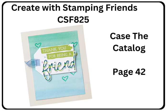 Welcome everyone and happy Thursday to you! One of fun things about July is that it’s our annual CASE the Catalog inspirations! For each Thursday in July, we pick a different sample from Stampin’ UPs! Annual Catalog to use as our inspiration. We are not exactly copying the image but using it to inspire our creation…maybe we use the same set or the colors or the layout or some combination of all the above. It’s fun seeing where the inspiration sample will take each of the designers!