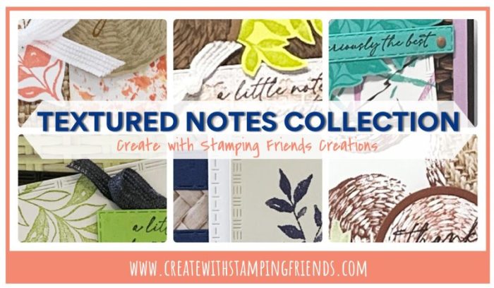 Stampin’ Up!’s TEXTURED NOTES BUNDLE will bring a botanical feel to your paper crafting projects with the detailed images of woven textures and leaves. The script fonts complement the organic images for a sophisticated look. Plus, the multi-sized rectangle TEXTURED NOTES DIES have unique die-cut borders are a must for any craft collection. We also included directions for two fun and easy techniques that enhance the TEXTURED NOTES COLLECTION for a total of SIX step-by-step card tutorials!