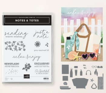 Create a beachy scene with Stampin’ Up!’s new NOTES & TOTES BUNDLE! You have sunglasses, lotion, pocket, scarf, newspaper, and other fun accessories to stamp and dress up your totes and coordinating dies to cut them out! Use one half of a tote diecut for the front of your card or scrapbook page or combine two of the tote diecuts to make a darling 3D tote to fill with candy or small goodies! Our NOTES & TOTES COLLECTION features the new 2025-27 In Colors and we have SIX new projects using them…perfect for your upcoming classes! We’ve paired the NOTES & TOTES BUNDLE with the pretty FLORALS IN BLOOM 12×12 DESIGNER PAPER! You’ll get step-by-step tutorials for all FOUR cards and TWO In Color featured 3D projects we know you will love!