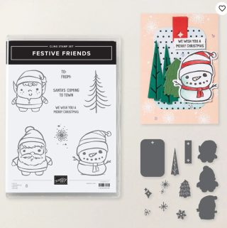 You are sure to have a merry Christmas when designing your cards and projects with the darling FESTIVE FRIENDS BUNDLE! The classic Santa, Snowman and Elf images will certainly put you in the mood to celebrate! Add in the pine trees and greetings for a special touch! We’ve combined the FESTIVE FRIENDS BUNDLE with the TRADITIONS OF CHRISTMAS 12×12 DESIGNER PAPER for your festive holiday crafting! In our FESTIVE FRIENDS COLLECTION, you’ll get step-by-step tutorials for SIX projects…FOUR cards and TWO favors ideas perfect for craft shows or giving to friends!