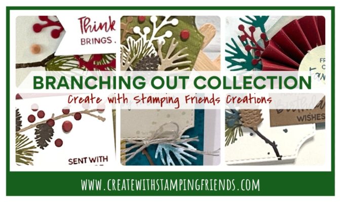 Embrace the earthy beauty of nature with Stampin’ Up!’s BRANCHING OUT BUNDLE. The life-like pine branches, berries, and pinecones images will bring a little of the outside to your indoors! Plus, the nested frames in the BRANCHING OUT DIES have accents of stitched trim to make them even more special. Add one of the special everyday greetings to finish off your special card or project. We’ve combined the BRANCHING OUT BUNDLE with the elegant hand-painted backgrounds in the SEASON OF ELEGANCE 12×12 DESIGNER PAPER with beautiful foil touches in neutral and Christmas colors. You’ll get step-by-step tutorials for SIX projects…FOUR cards and TWO small gift/decor ideas perfect to showcase the beauty of the season.