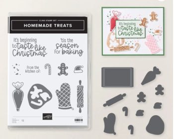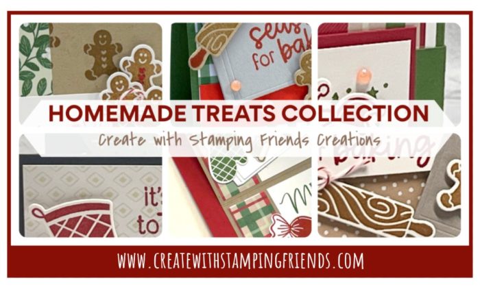 Enjoy using the festive shapes in Stampin’ Up!’s HOMEMADE TREATS BUNDLE to create our fun, baking-theme cards and favors in this Collection! The oven mitt, rolling pin, candy canes, cookie dough and cutouts create some extra special touches on your projects just for the Christmas holidays! We’ve combined the HOMEMADE TREATS BUNDLE with the holiday inspired CHRISTMAS TAGS & MORE 6×6 DESIGNER PAPER! You’ll get step-by-step tutorials for SIX projects…TWO regular cards, TWO special-fold cards, and TWO small favor ideas to hold a special treat for friends and neighbors!
