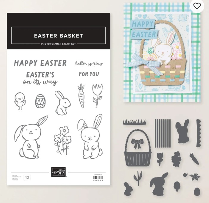 Supplies used: Easter Basket Stamp Set, Easter Basket Dies, Easter Joy 12×12 Designer Paper, Easter Assortment, White Baker’s Twine, Adhesives