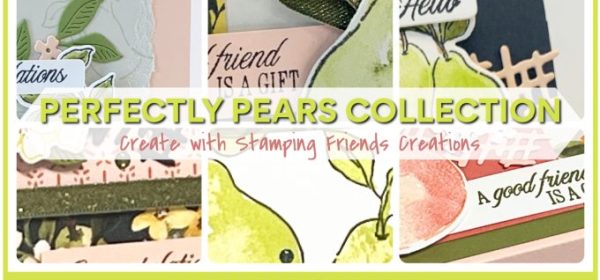 Stampin’ Up!’s new DistINKtive style PERFECTLY PEARS BUNDLE makes creating quick and easy with the two-step stamping! Stamp the outline in a dark color, then