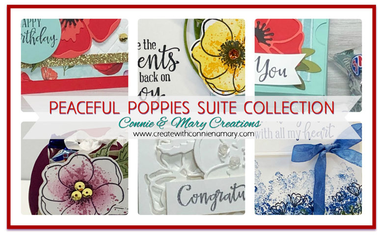 Stampin’ Up!’s Peaceful Poppies Suite is SO striking with gorgeous flowers and coordinating bright designer paper and accessories. We’ve designed an EXCLUSIVE Collection featuring BOTH Peaceful Poppies Suite Bundles...AND also included a couple with “outside the box” colors! This Collection has FOUR cards and TWO small favors with STEP-BY-STEP PHOTO TUTORIALS. See all the details HERE!