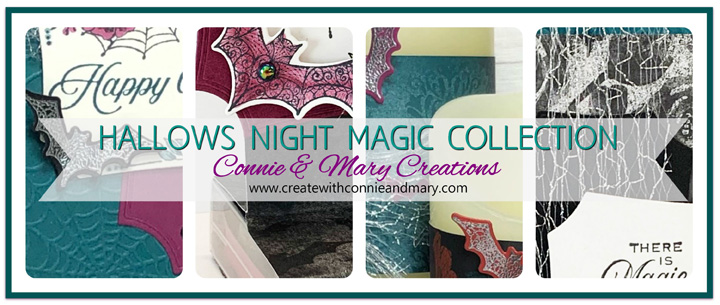 From sweet to just a little bit spooky…the HALLOWS NIGHT MAGIC BUNDLE is a great Halloween set. The labels in the Halloween Magic Dies can be used for more than Halloween…they are a wonderful shape! We’ve paired this bundle with the coordinating Magic in the Night Suite of products! Our HALLOWS NIGHT MAGIC COLLECTION has TWO card tutorials and TWO home decor/favor tutorials. See more details HERE! Email us at createwithconnieandmary@gmail.com for an invoice!