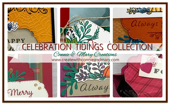 For our CELEBRATION TIDINGS COLLECTION we’ve done something other than bag toppers! Our Collection has FOUR cards, a GIFT CARD holder and a fun SWEET TREAT HOLDER for a total of SIX tutorials! These tutorials are easy enough for in-person or online classes! ALL SIX tutorials using the CELEBRATION TIDINGS BUNDLE and Plaid Tidings Designer Paper are BRAND NEW and have step-by-step directions. SEE MORE DETAILS HERE! Email us at createwithconnieandmary@gmail.com for an invoice!
